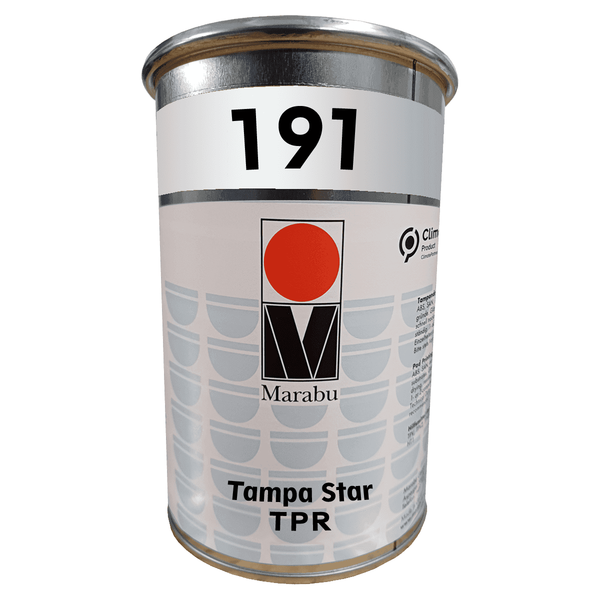 Tampa Star TPR Solvent. Μελάνη ταμπόν για άκαμπτο PVC, πολυστυρένιο, ABS, SAN, πολυκαρβονικό, ακρυλικό γυαλί και βερνικωμένα υποστρώματα. Γυαλιστερή, με καλή καλυπτικότητα, πολύ γρήγορο στέγνωμα, σύστημα ενός ή δύο συστατικών, ανθεκτική στη βενζίνη. Η γυαλιστερή και πολύ γρήγορα στεγνώνουσα μελάνη Tampa® Star TPR είναι ιδιαίτερα κατάλληλη για προϊόντα υψηλής ποιότητας, όπως συσκευασίες καλλυντικών, περιβλήματα και άλλα αντικείμενα που απαιτούν υψηλή αντοχή.